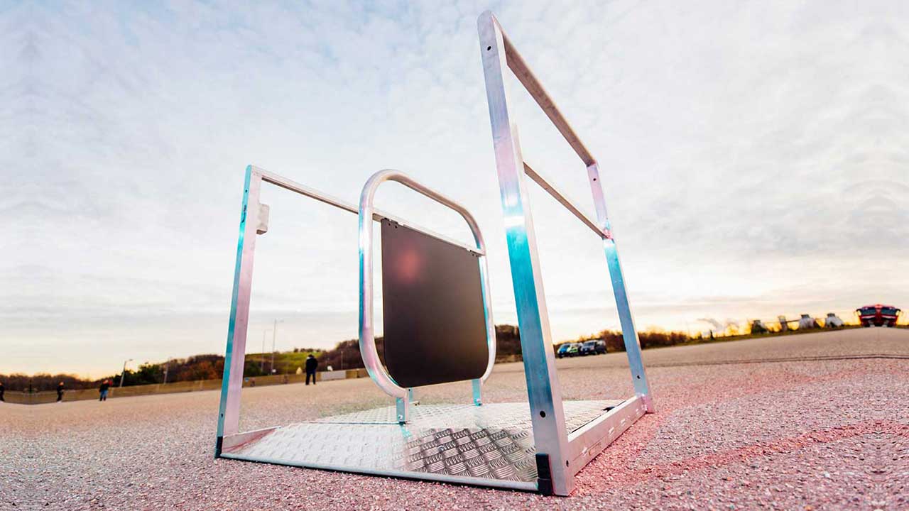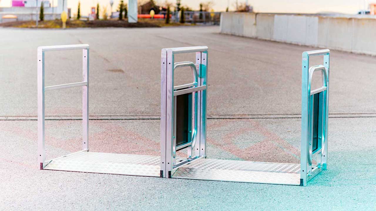 Together with one of the world leaders in event infrastructure, EPS, we designed an entry gates system that can be dismantled so quickly and easily by the stewards that it can even be placed on escape routes. The shelf folds down automatically as soon as the two inner barrieres are demounted and stored on top of the two outer barriers. The resulting space is then free of any obstacles and ready to be used as an escape route once the ingress phase has ended.